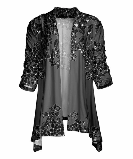 Flaunt casual-cool vibes with this fluttery open cardigan that extends at the sides of the hem and boasts a lively print for energetic everyday style.
