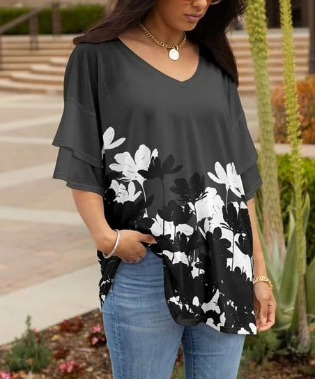 Stretch-kissed tunic featuring a plunging v-neckline to frame your favorite pendant.