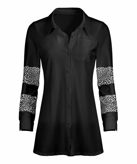 Button-up styling and a folded collar bring polished appeal to this stretch-blend tunic, while a flowing fit and generous length make it ideal for layering over leggings or skinny jeans.