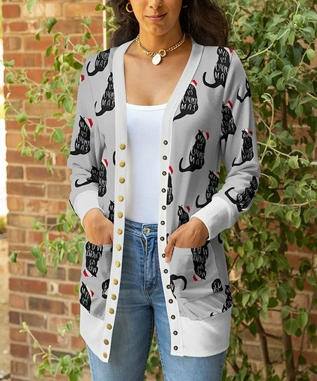 This long cardigan features a snap-up design and side pockets for on-the-go convenience.