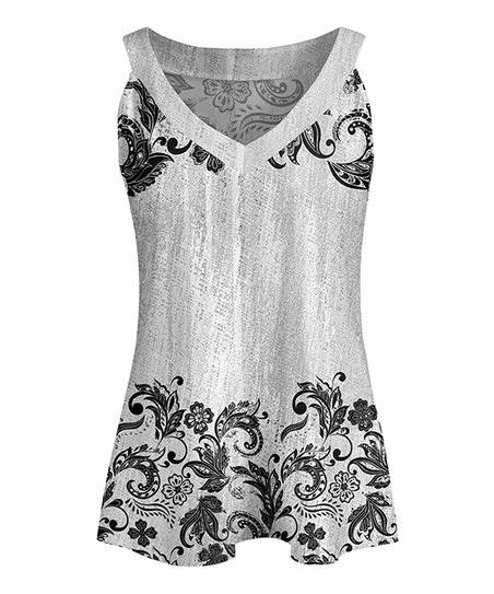 Stylish floral tank with an attached v-neck yoke. Cut from stretch-friendly fabric.