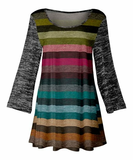 Lily | Gray & Blue Abstract Stripe Long-Sleeve Scoop Neck Tunic – Women & Plus