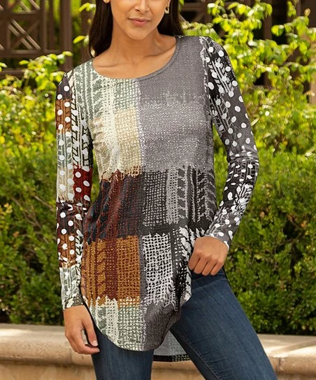 Keep things casual in this stretch-infused tunic with a crewneck and long sleeves.