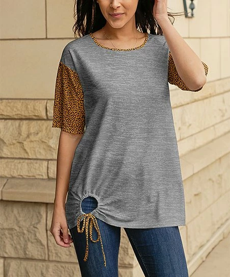 Bring styling versatility to your look with this stretch-enhanced tunic featuring short sleeves and a side-tying hemline.