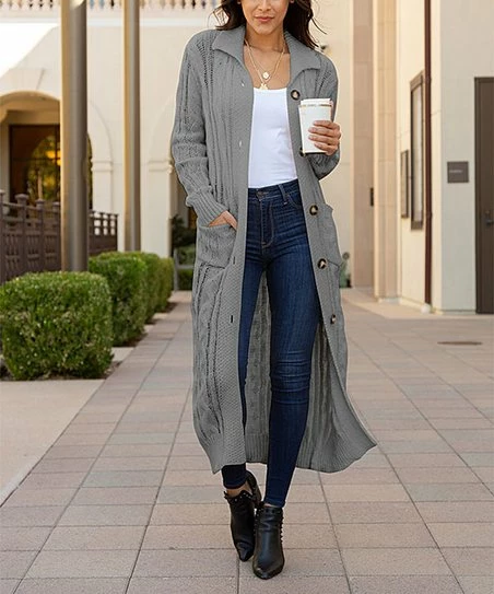 Add a dramatic touch to your outfit with this sweeping cable-knit duster in a gorgeous hue and featuring built-in pockets ideal for stowing your essentials.
