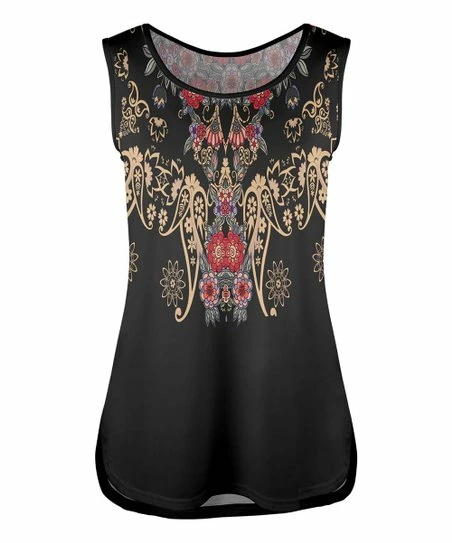 Liven up your warm-weather repertoire with this scoop neck tank in a get-noticed print. A slit curvy hem brings it to a shapely finish.