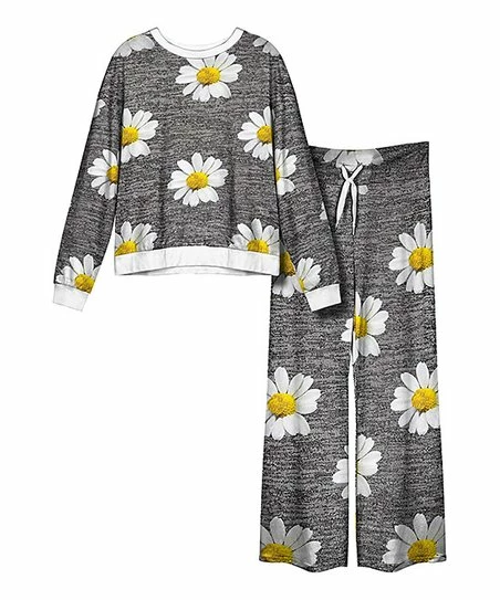 - Includes gray and white daisies sweatshirt and gray and white daisies lounge pants (two pieces total)