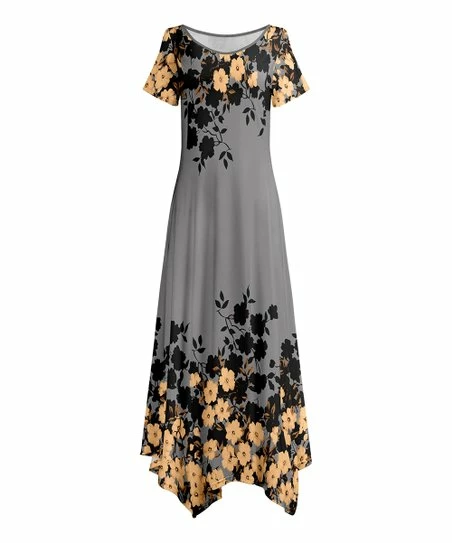 Casual yet stylish, this handkerchief maxi dress features an eye-catching pattern and a whimsical hem.