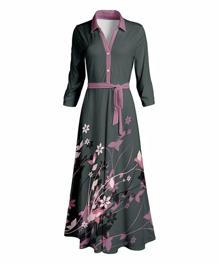 Ensure a poised look when you wear this long-sleeved shirt dress that boasts a collared v-neckline and a cinched waist for a tailored style.