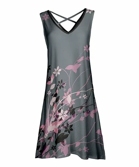 An edgy crisscross-back design makes for dramatic exits when you don this sunny-style dress fashioned with an expressive floral print and a generous neckline for your favorite trinket.