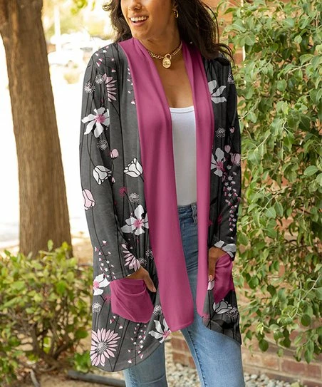 Boasting stretch-enhanced fabric, this sleek cardigan easily dresses up plain tees and features two front pockets for your keys or cellphone.