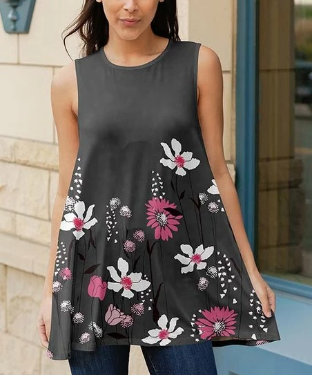 Pair this sleeveless tunic with your favorite pair of leggings to achieve an effortlessly chic, everyday look. Featuring a flowy hem and an eye-catching print for added flair.
