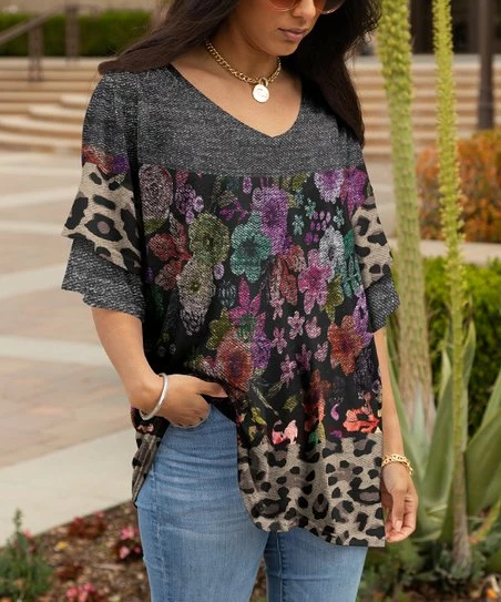 Revitalize your casual wardrobe with the bold print on this ruffle-sleeve tunic.