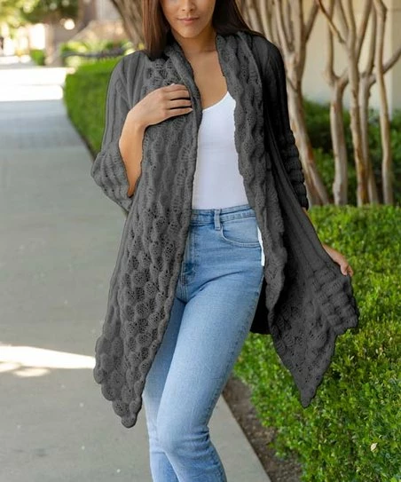 Give your wardrobe a boost with this long open cardigan featuring a fun textured design and a neutral hue for easy outfit pairings.