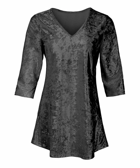 Update your ensemble with this classic tunic featuring crushed velvet, three-quarter sleeves and an airy fit for a modern touch.