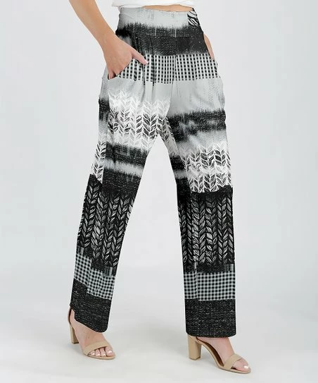 Lily | Gray & White Abstract Pocket Wide-Leg Pants – Women