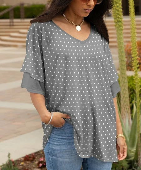 A popular print with flowy layered sleeves makes this tunic an easy off-duty option.