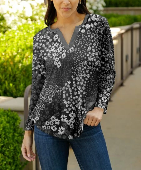 Top off your look with this long sleeve featuring a notched neckline.