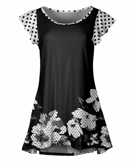 This eye-catching tunic bares darling flutter sleeves and a flowy hem to add flirty flair to your everyday look. Crafted with a touch of stretch for enhanced comfort.