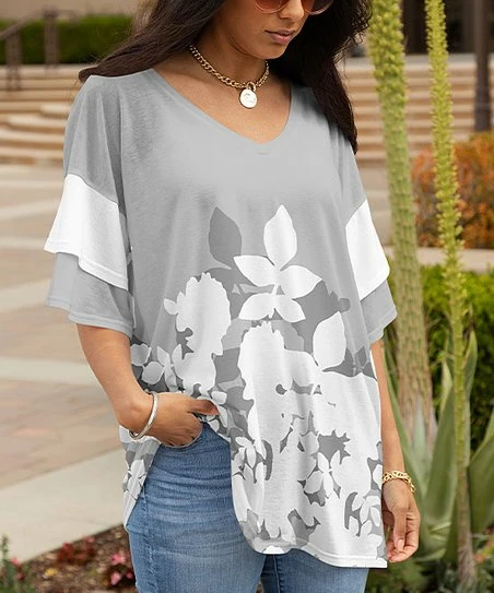 Chic weekend looks are a certainty when you pair this flutter-sleeve tunic with your favorite pair of jeans.
