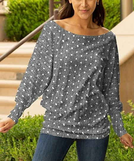 A relaxed-fit boatneck pullover with bishop sleeves and festive print.