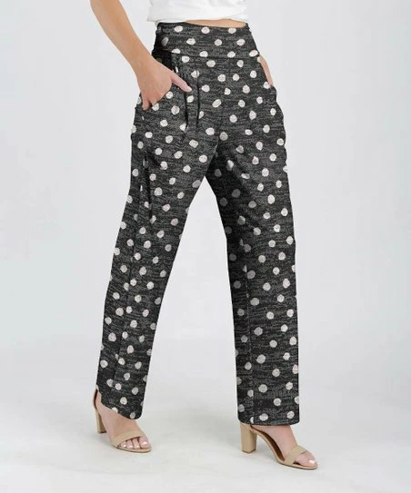 Lily | Gray & White Polka Dot High-Waist Wide-Leg Pants – Women & Plus