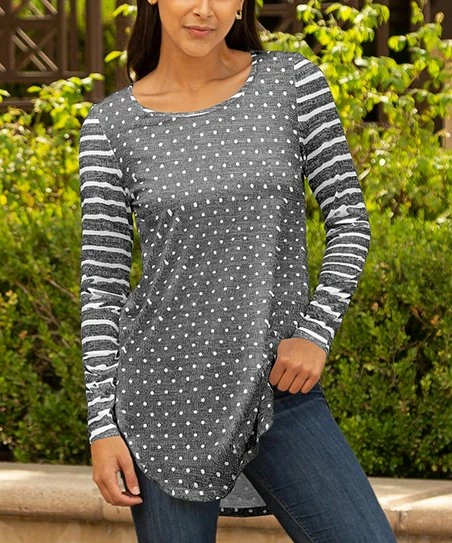 Keep things casual in this stretch-infused tunic with a crewneck and long sleeves.