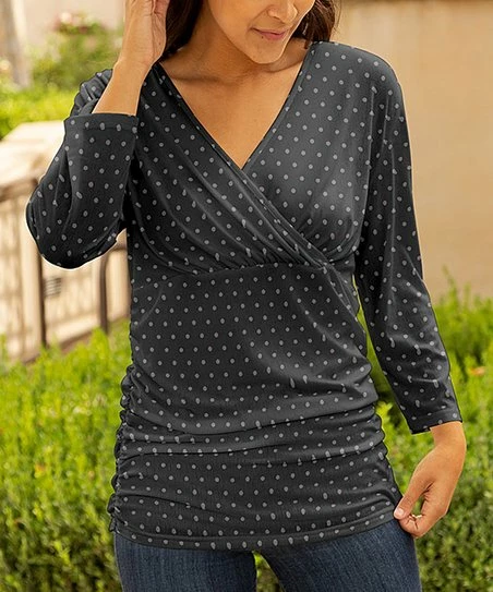 An overlapping surplice neckline and bold print finish this tunic with finesse.