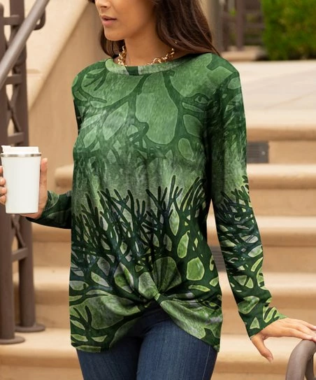 A twisted hem at the front of this long-sleeve tunic creates a trend-right fit.