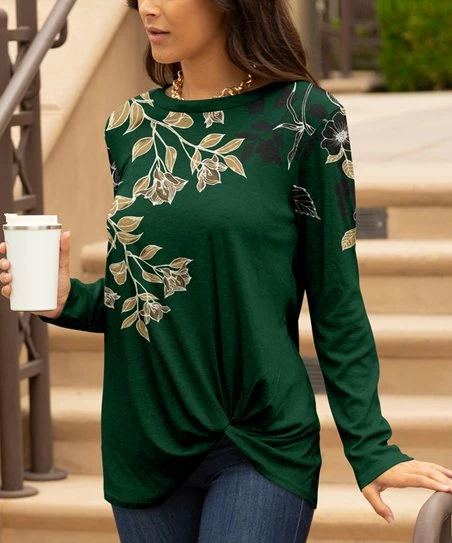 Amplify your easygoing charm when you don this soft stretch-friendly tunic that features a twist-front hem for a trend-right look.