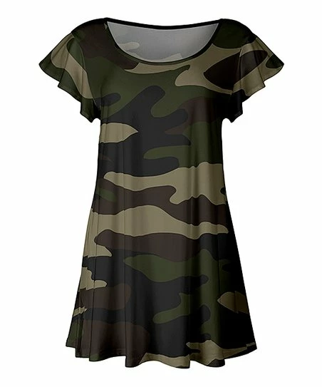 Designed with an eye-catching print and flutter sleeves, this lightweight tunic is sure to turn heads in every room you enter.