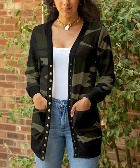 Add a dynamic detail over your go-to tops and tanks when you don this bold cardigan finished with a snap-up closure for adjustable comfort. Pockets make a snug spot for your hands.