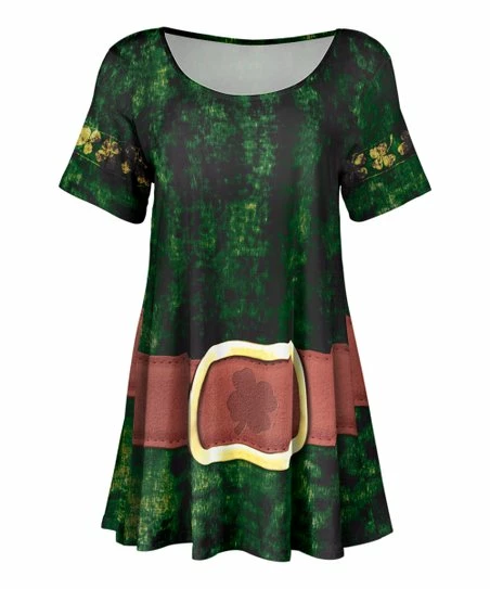 The flowy profile of this short-sleeve tunic is enhanced by its stretch-friendly fabric.