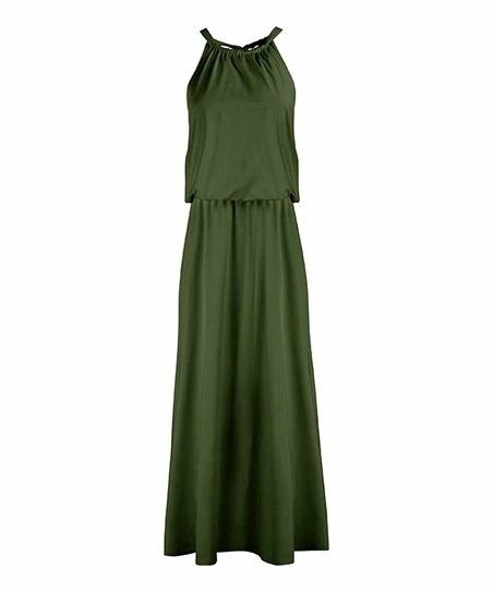 Sweep through the room in this stately maxi dress featuring a gracefully draping blouson design. A touch of stretch in the material ensures comfort that lasts all day long.