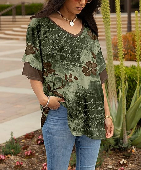 Layered ruffle sleeves frame this boldly patterned tunic in the prettiest of ways.