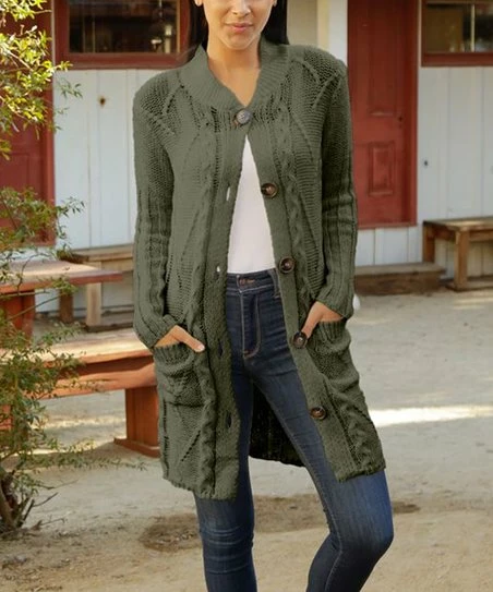 This cozy cardigan features a relaxed fit and a classic color that makes it an easy addition to any outfit.
