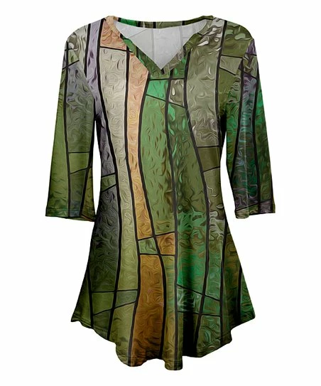 Add an eye-catching basic to your wardrobe with this bold tunic featuring vibrant graphic detail and a flattering v-neckline.