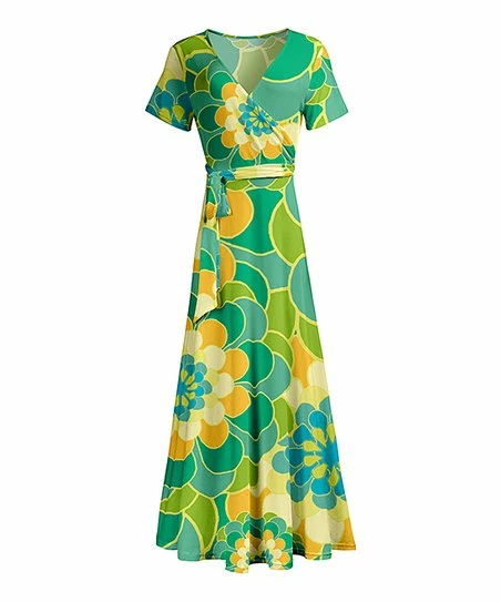 Tackle warm-weather days in comfortable style with this breezy maxi dress featuring a lively floral print and lightweight stretch-blend fabric. A surplice neckline and belted waist accentuate your natural curves for a form-flattering fit.