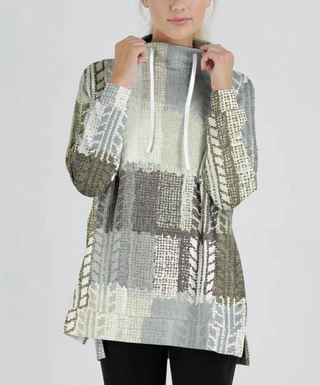 Lily | Green & Gray Abstract Patchwork Funnel-Collar Pullover – Women & Plus
