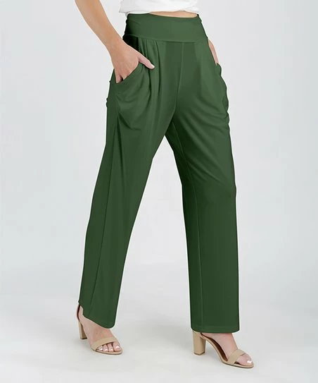Elevate your ensemble with these elastic high-waist pants with relaxed wide legs and deep side pockets for holding your essentials.