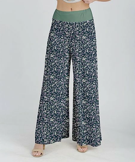 Lily | Green & Navy Floral Palazzo Pants – Women