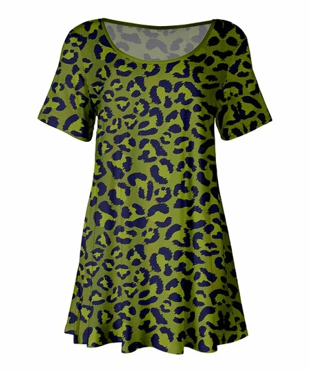 Beat the heat in bold fashion when wearing this scoop-neck tunic that provides the breezy coverage of short sleeves and showcases an artistic print.
