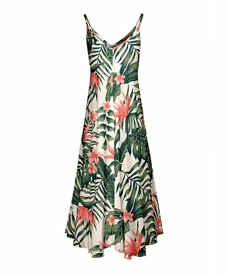 Slip into a tropical state of mind when you don this breezy sleeveless maxi dress fashioned with a lush leaf design.