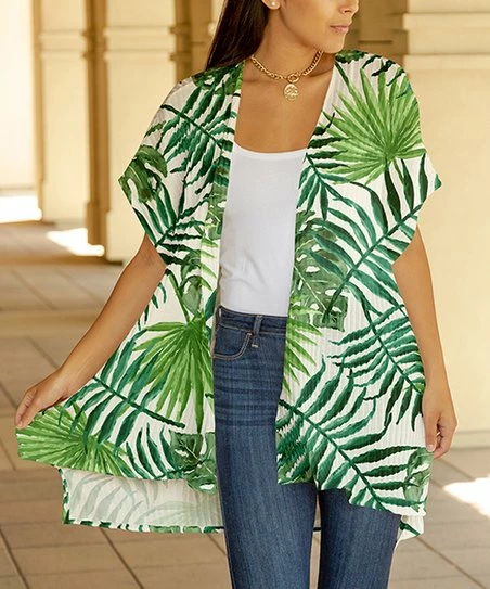Drape yourself in this lightweight fern-print kimono to add elegance to any outfit.
