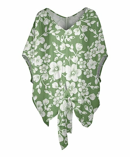 Free-spirited style is all knotted up in the design of this boldly-patterned tunic that features roomy dolman sleeves and ties at the hem.