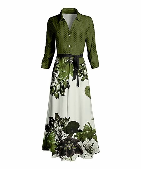 Nail the one-and-done look by throwing on this maxi dress detailed with a waist-cinching tie and button-up bodice.