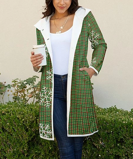Bundle up as you head out the door in this roomy hooded coat complete with pockets that offer a casual spot for your hands while you wander.
