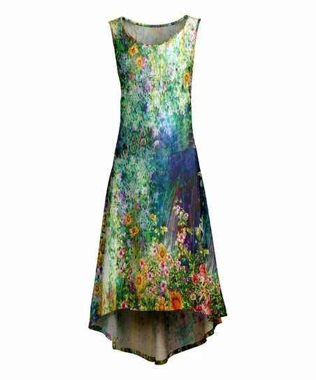 A flowing high-low hem brings graceful movement to each step while a rich print brightens your look with a pop of modern flair.
