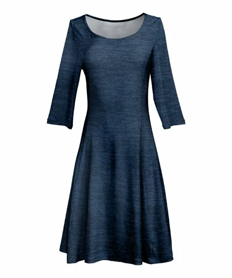 A heathered design accents this dress featuring three-quarter sleeves and a boatneck cut.