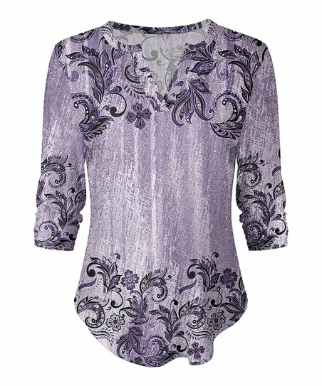 Great for weekend-wear and days spent shopping, this lovely top features a comfy stretch-enhanced material and on-trend notch neckline.